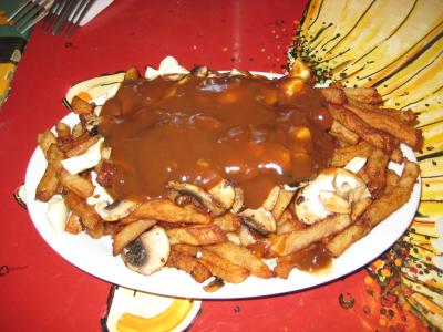 Außerdem haben wir am letzten Tag Poutine gegessen im La Banquise, was anscheinend ein sehr beliebtes Restaurant ist, denn wir mussten fast ne halbe Stunde auf unseren Tisch warten. Poutine ist übrigens nichts anderes als Pommes mit Käse und Bratensauce (ich hatte die vegetarische Version davon).